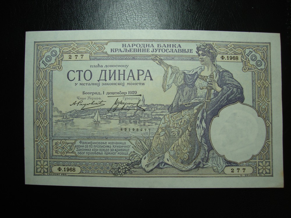 IUGOSLAVIA 100 DINARI 1929 AUNC