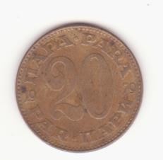 Iugoslavia 20 para 1979, alamă-aluminiu, stare bună.