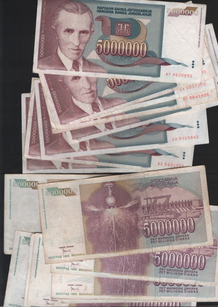 Iugoslavia Yugoslavia 5000000 5.000.000 dinari 1993 F-VF pret pe bucata