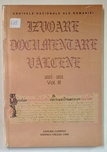 IZVOARE DOCUMENTARE VALCENE , CATALOGUL DOCUMENTELOR DE LA ARHIVELE NATIONALE DIN RAMNICU VALCEA ( 1605- 1821 ) , VOLUMUL III , de DUMITRU SOARE si IO