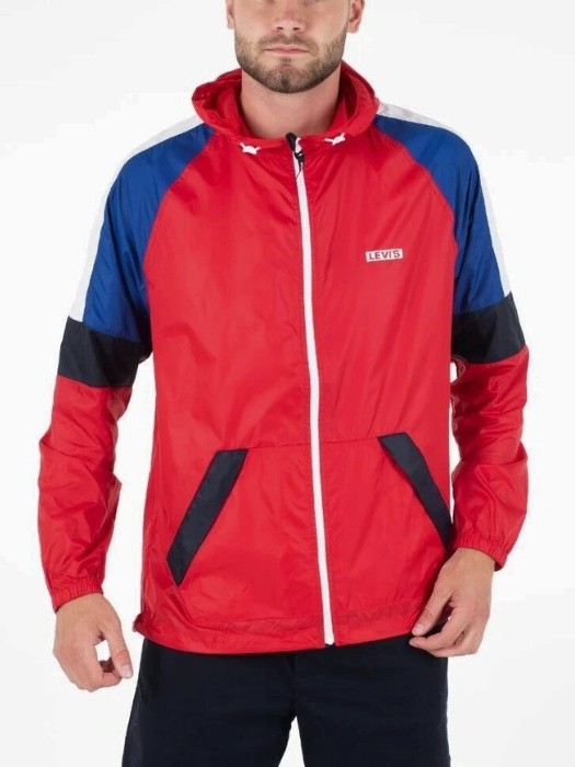 Jacheta Colourblock Windrunner barbati cu gluga si logo, rosu, L