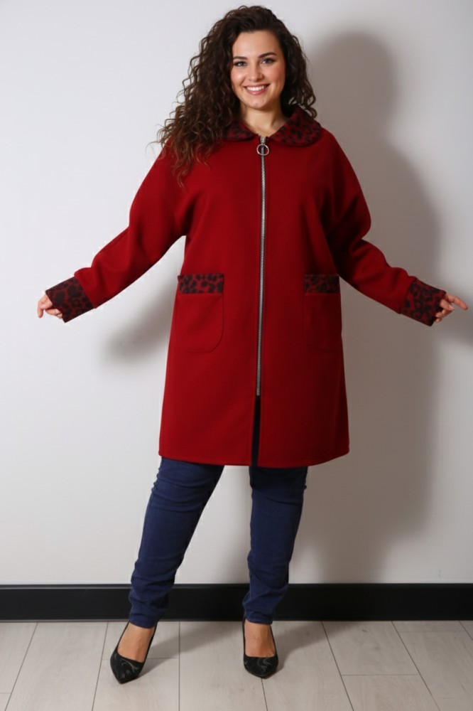 Jacheta cu guler din stofa Eva Marsala - 46Marimea