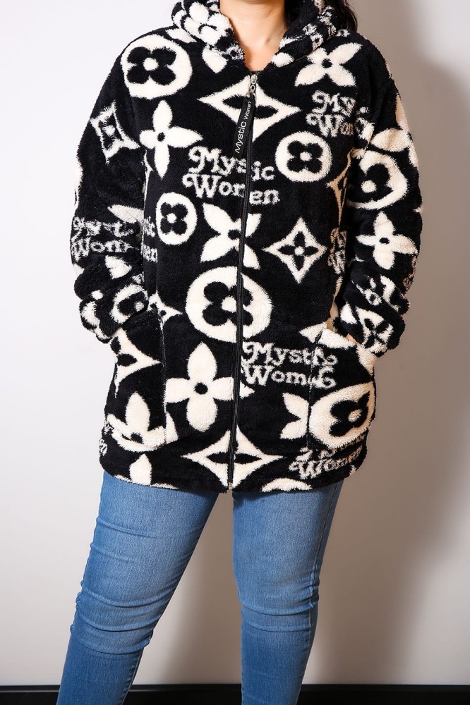 Jacheta din cocolino comoda si placut la atingere, iti ofera confort in cele mai racoroase zile.Imprimeu VibrantFermoar • Buzunare • Gluga • Cocolino