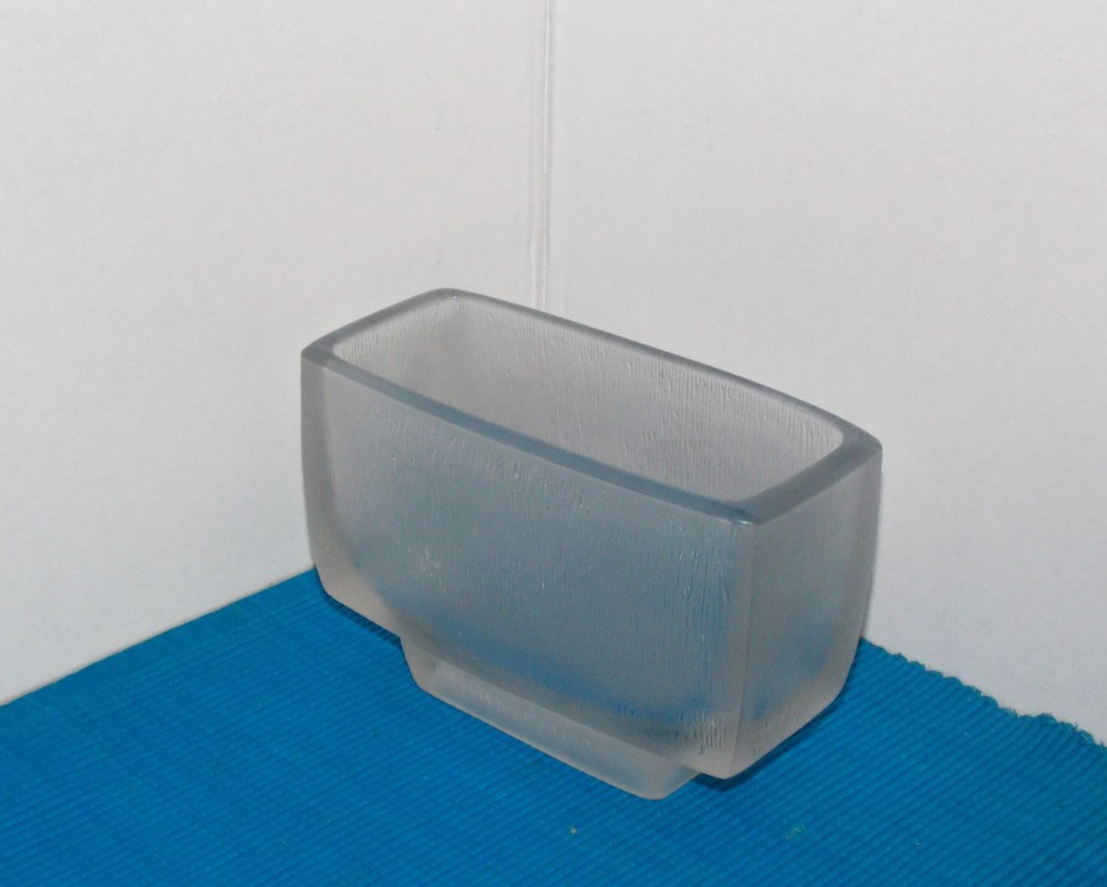 Nu știu de ce toată lumea îi spune jardinieră, pentru că este o vază pentru flori cu tulpină moale, lalele, garoafe ș.a. Este suflată manual în mulaj. Suprafața exterioară este frumos texturată și opacizată în scopul de a obține un efect de diminuare a transparenței, asta pentru a masca tulpinile, lăsând doar florile să se arate.