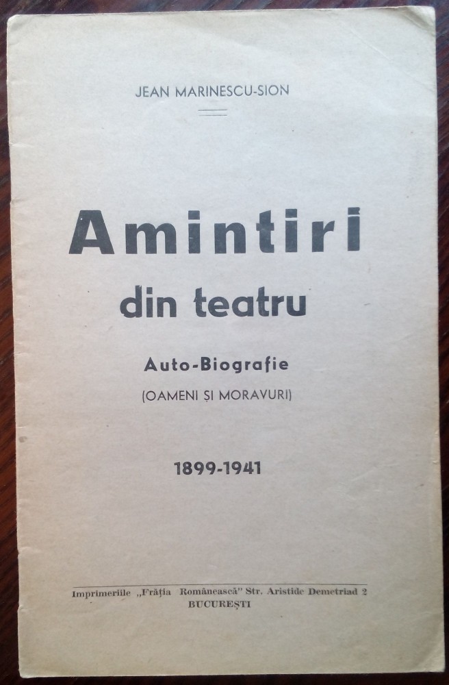 JEAN MARINESCU-SION: AMINTIRI DIN TEATRU (1899-1941) [pref. COSTEL NICOLAU]