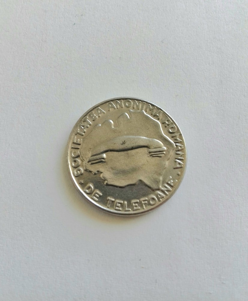 Jeton telefonic emis de Societatea Anonima Romana, cu diametrul de 2.2 cm. Piesa de colectie cu valoare istorica, reflectand perioada utilizarii jetonului ca mijloc de acces in telefonia publica din Romania.