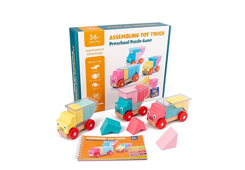 Acest joc de construit cu 3 camioane și cuburi de lemn este o modalitate excelentă de a stimula gândirea logică și de a dezvolta abilitățile de rezolvare a problemelor ale copilului.