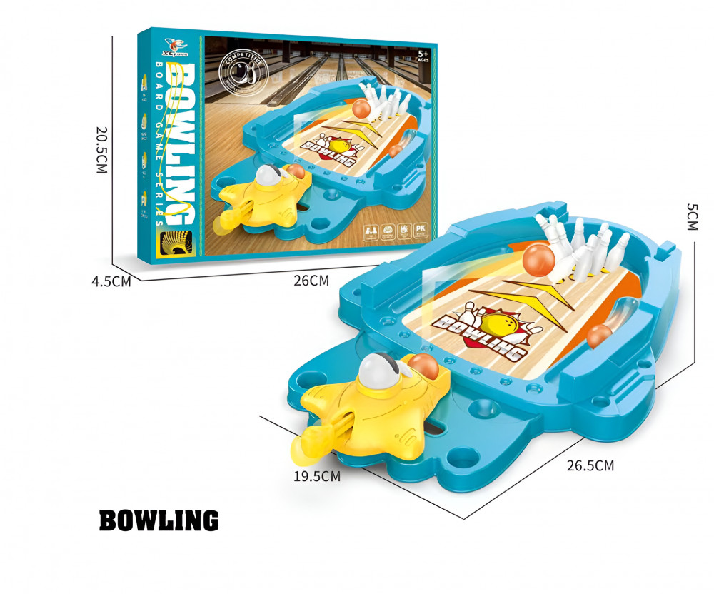 Joc de Masa Mini Bowling Interactiv pentru Copii, Cyrax, Mingi si Figurine Incluse, 26.5x19.5x5 cm, Albastru