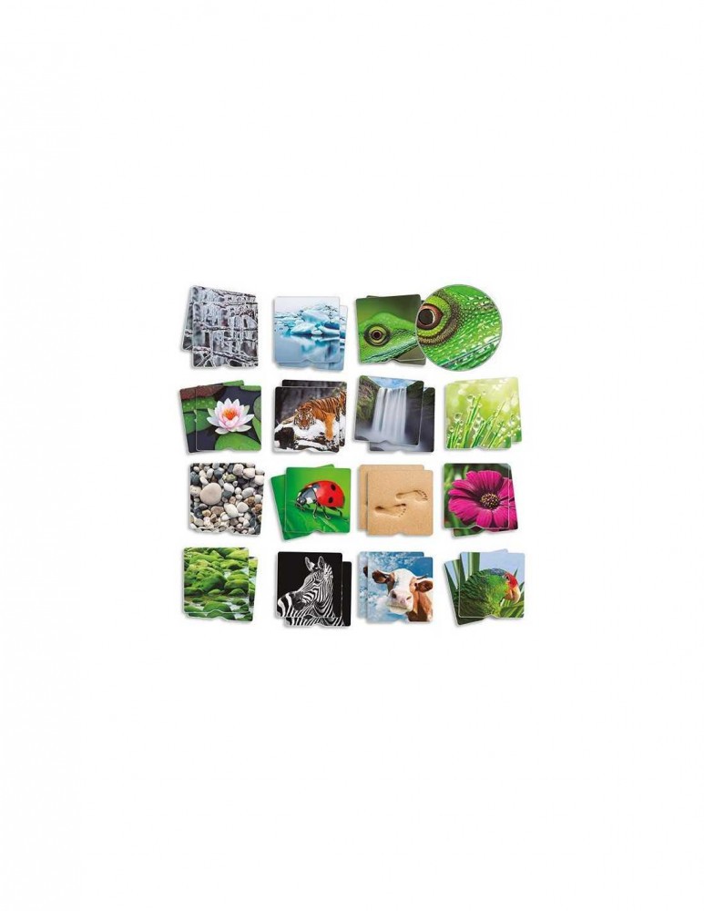 Un joc de memorie tactila cu format mare, cu diferite texturi care prezinta imagini reale ale mediului nostru pentru a lucra la discriminare tactila, memorie vizuala si atentie prin atingere.