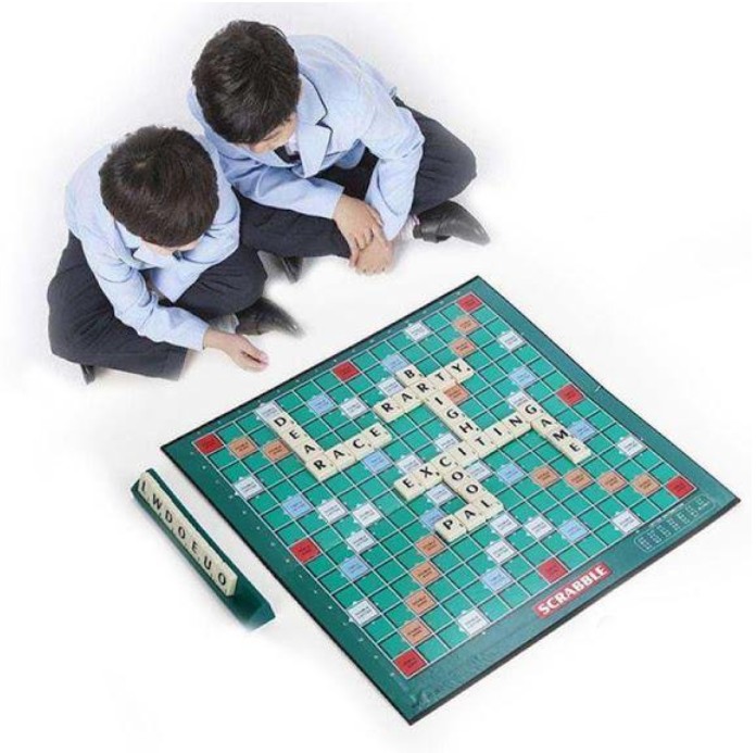 Scrabble este un joc potrivit copiilor de peste 10 ani, pentru ca e important ca ei sa stie bine sa scrie si sa citeasca ca sa poata asocia literele astfel incat sa formeze cuvinte. Numarul de jucatori este de minimum 2 si maximum 4. Regula e simpla – cu cat formezi mai multe cuvinte, cu atat primesti mai multe puncte ai castigi. Inainte de inceperea jocului, se rastoarna toate jetoanele cu litere intr-un bol si fiecare jucator extrage cate o litera. Cine are cea mai apropiata litera de A incepe jocul. Primul cuvant se formeaza din mijlocul cartonului, acolo unde se gaseste o casuta aurie. Restul cuvintelor trebuie legate de primul cuvant, nu se pot incepe cuvinte intr-o parte a tablei unde nu exista jetoane cu litere. Fiecare jeton are un punctaj si cu cat aduni mai multe puncte cu atat te detasezi de restul jucatorilor si ai sanse sa iesi invingator. Principala regula este ca toate cuvintele formate sa aiba sens, sa existe in dictionar. Pe tabla sunt casute cu bonificatii – dubleaza litera, tripleaza litera, care ne ajuta sa ne marim si mai mult punctajul. In acest fel, ne dezvoltam mai bine vocabularul in limba engleza.