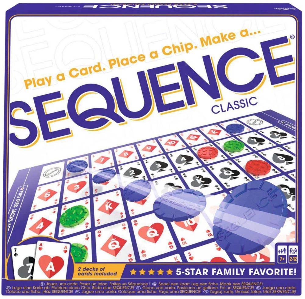 Sequence!Continut:Tabla de joc,104 carti Sequence,50 de jetoane