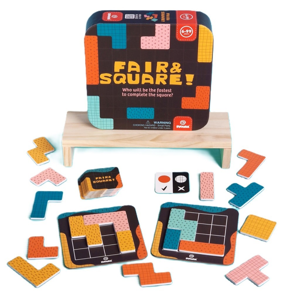 Joc de strategie Simplu si corect Pentru grupuri mici sau familii, acest joc provoaca jucatorii sa gandeasca corect, sa negocieze, si sa ia decizii care conteaza. Fiecare runda este o combinatie de tactica si spirit competitiv, unde deciziile echitabile si planificarea conteaza la fel de mult ca norocul. Daca vrei sa experimentezi ca “fair” poate fi si „square”, atunci acest joc e facut pentru tine. Pentru momente relaxate, seri de familie sau pranzuri prelungite cu prietenii. Dimensiune : 18 × 18 × 4.5 cm Varsta recomandata: +8 ani. C onfectionat din carton, piese de joc din lemn. AVERTISMENT: A nu se lasa la indemana copiilor sub 3 ani. Producator: Svoora