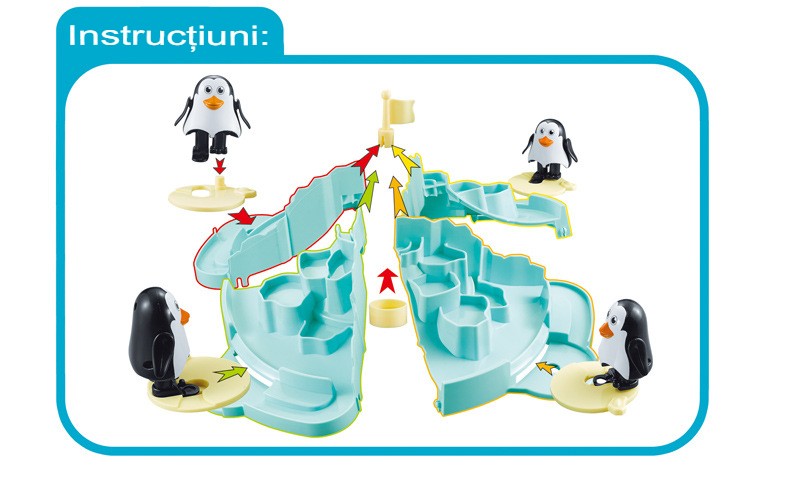 Un joc distractiv și interactiv pentru 2-4 jucători, perfect pentru dezvoltarea îndemânării, coordonării și spiritului competitiv. Conceput special pentru copiii de peste 3 ani, acest joc aduce aventură și strategie într-o bătălie amuzantă pe ghețar.