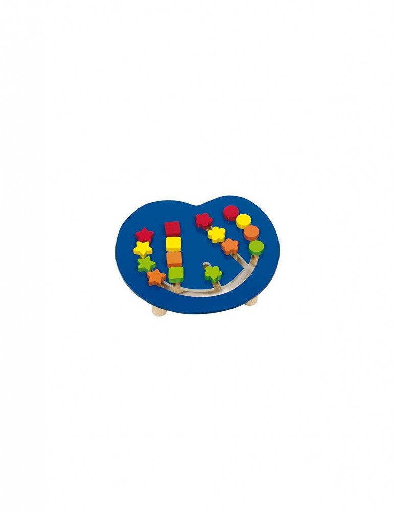 Tablita din lemn contine patru forme diferite - stele, patrate, flori si cercuri - in 4 culori - rosu, galben, portocaliu si verde.