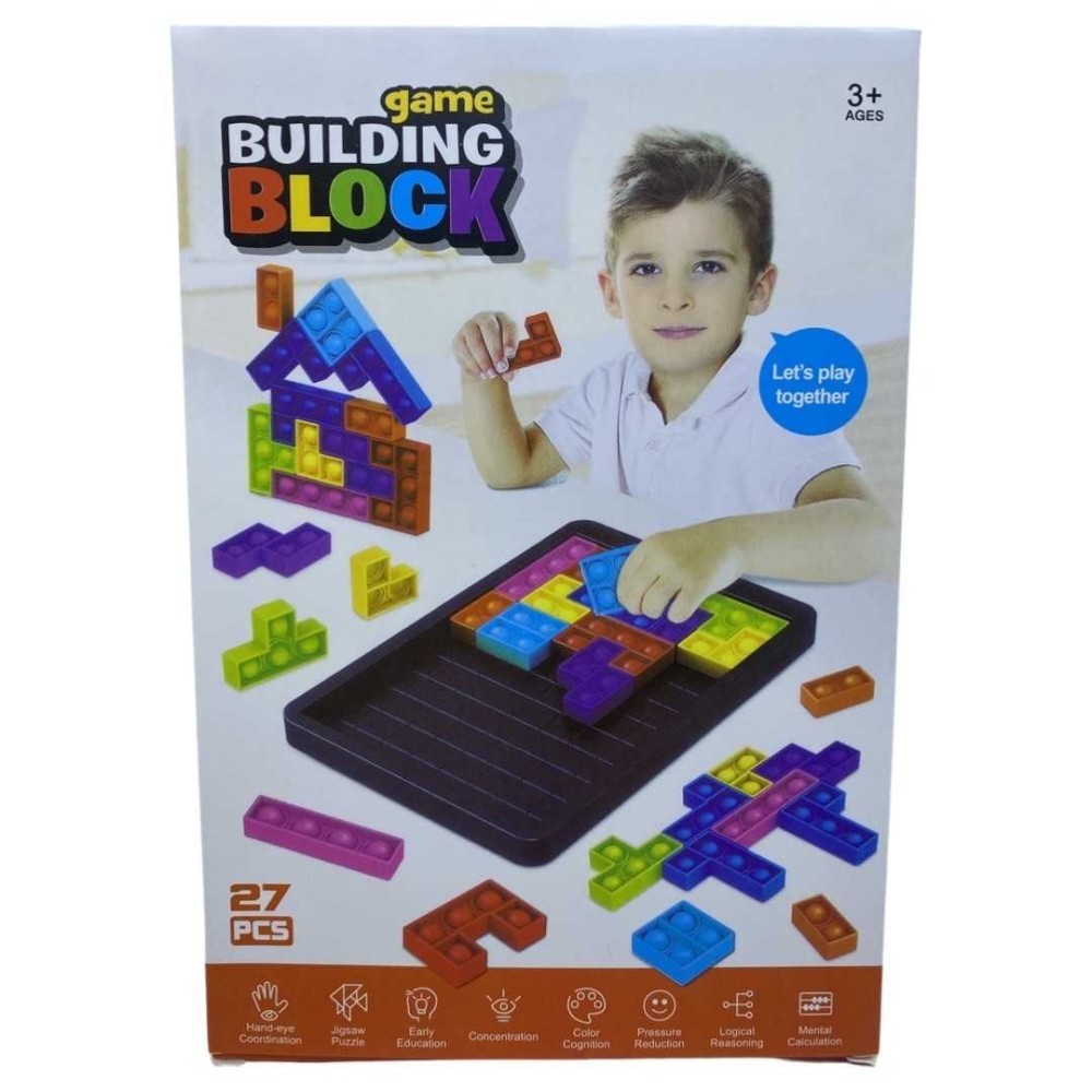Cu jocul Pop It Tetris nu te plictisesti niciodata! Clasicul joc Tetris a aparut sub o noua forma, de jucarii cu bule, cu diferite forme geometrice, ce pot fi aranjate in diverse moduri si utilizate la nesfarsit. Jocul Tetris este distractiv si reprezinta o modalitate demonstrata de eliminare a stresului, de dezvoltare a gandirii logice si a abilitatilor aritmetice. Extrem de util in calatoriile cu masina, avionul sau trenul, fiind usor de transportat si de curatat. Jocul include 27 de piese Pop It de diferite forme si culori. Varsta recomandata: +3 ani
