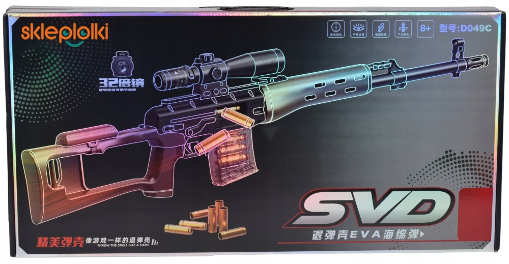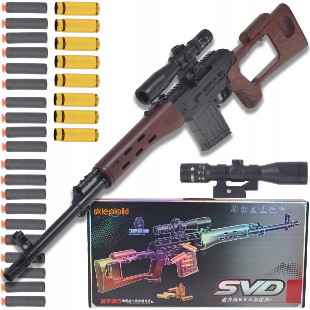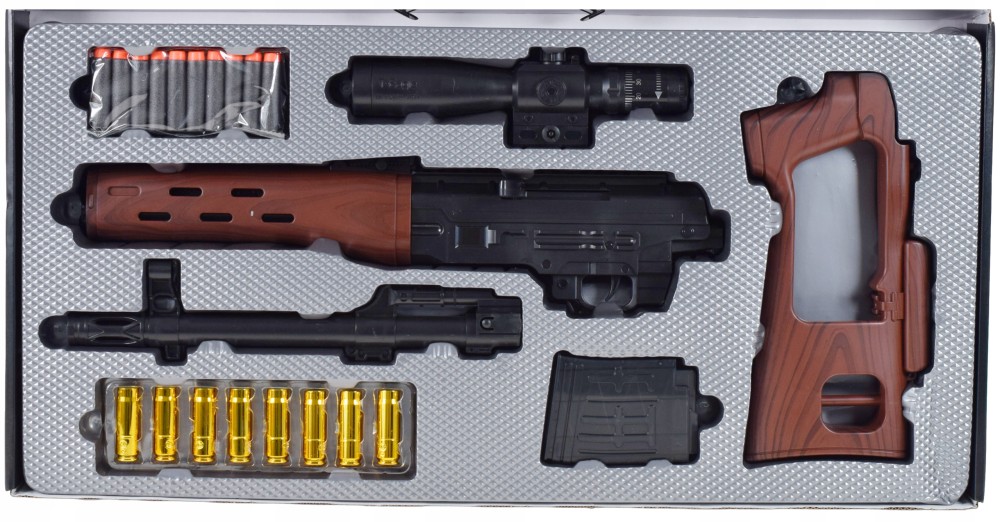 Aspectul său realist, greutatea solidă și ejectarea cartușelor după tragere fac jocul și mai interesant. Pușca trage săgeți din spumă sigure și nu necesită baterii. Setul include o lunetă, 20 de săgeți, 8 cartușe – toate ambalate într-o cutie atractivă, perfectă pentru un cadou!
