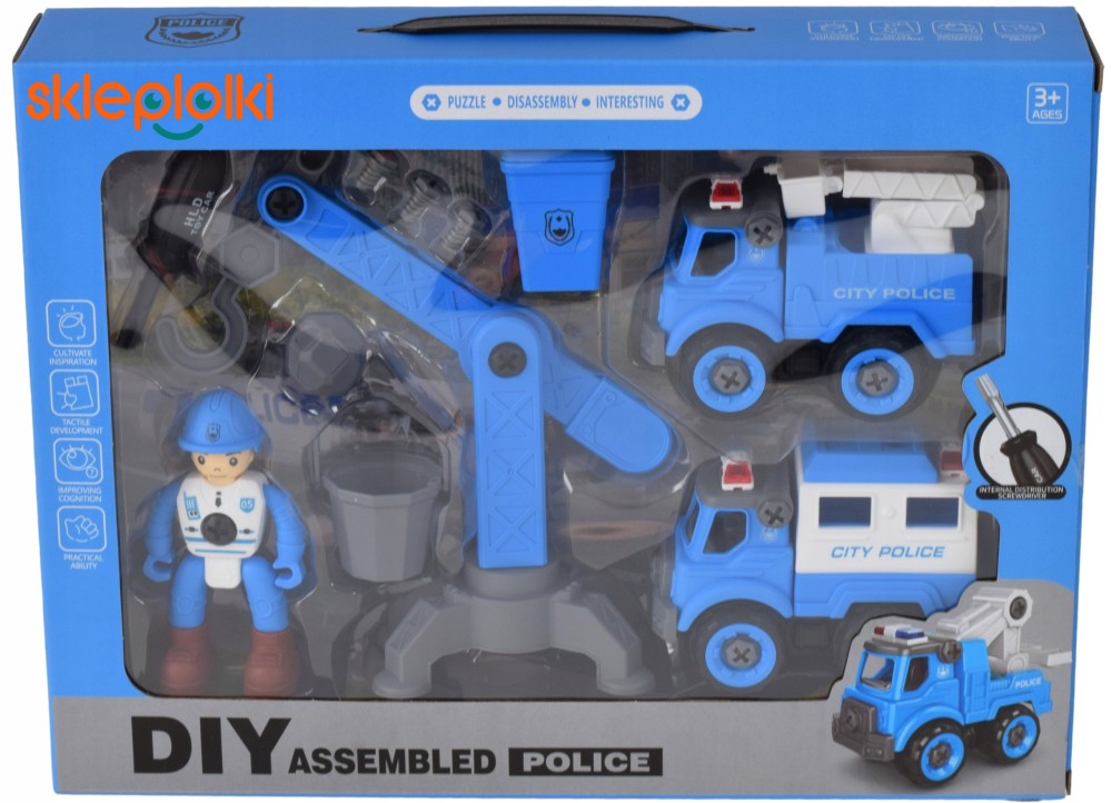 Jucării educative Set de vehicule ale poliției CONSTRUCTIONS de demontat