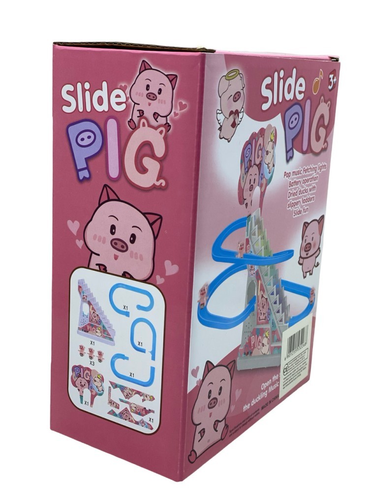 Noul tobogan de jucarie cu Purcelusi o sa-i tina atentia copilului tau in fiecare zi, va asigura distractia si buna dispozitie a copilului tau in jocurile acestuia cu prietenii sau chiar cu dumnevoastra. Jocul presupune asezarea purcelusilor la poalele toboganului pentru a fi ridicati de scara rulanta pentru a putea sa se dea pe minunatul tobogan. Dimensiune cutie 32x23 cm. Functioneaza cu baterii tip AA care nu sunt incluse. Este recomandat copiilor peste 3 ani.
