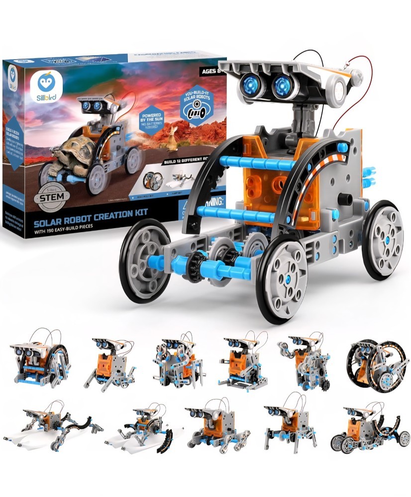 Jucarie constructie STEM , Sillbird RB01, solar robot 12-in-1, 190 Piese pentru copii 8+, functioneaza pe energie solara