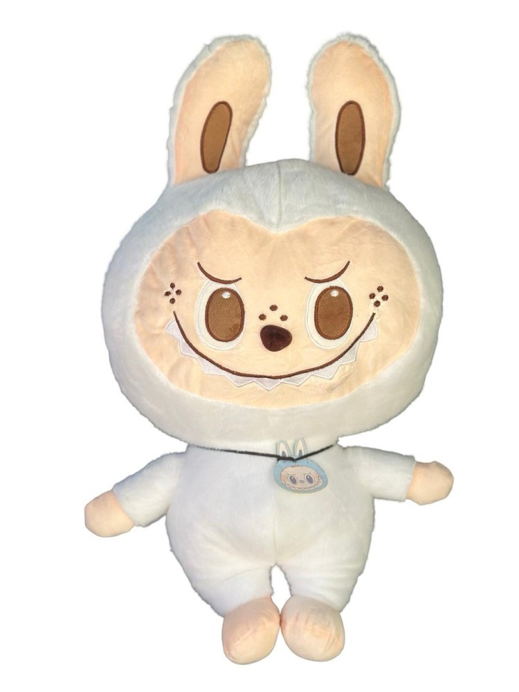 Jucarie de plus Labubu Gigant Alb 50cm cu zambet obraznic si expresie haioasa. Material moale si placut la atingere, perfecta pentru imbratisari sau decor. Design unic cu urechi mari si pandantiv cu chipul personajului. Ideala pentru copii sau fanii jucariilor neconventionale. Un cadou amuzant si memorabil!