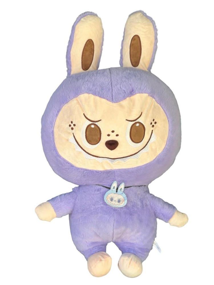 Jucarie de plus Labubu Gigant Mov 50cm cu zambet obraznic si expresie haioasa. Material moale si placut la atingere, perfecta pentru imbratisari sau decor. Design unic cu urechi mari si pandantiv cu chipul personajului. Ideala pentru copii sau fanii jucariilor neconventionale. Un cadou amuzant si memorabil!