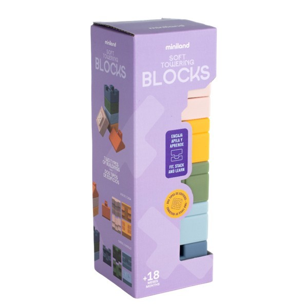 Jucarie educativa turn de stivuit - cuburi moi, 6 luni+, tower miniland 46021