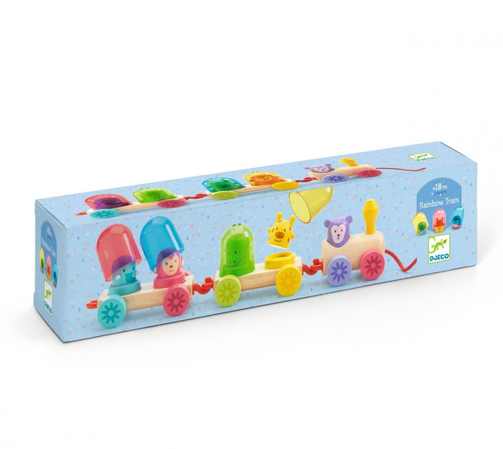 Trenul culorilor Vagoane din lemn și figurine colorate pe care copilul le folosește liber pentru a asambla un tren. Setul conține și domuri colorate translucide, care se pot folosi pentru descoperirea culorilor. Suprapunând domul cu figurinele, se obțin nuanțe noi, datorită culorilor complementare. Odată asamblat trenul, copilul merge cu trenul trăgându-l de sfoară, fiind și o jucărie de tras potrivită pentru primii pași. Figurile sunt în culori primare și pot fi acoperite de o cupolă colorată translucidă. Schimbând cupolele, copilul va crea culori noi datorită transparenței acestora. Continut: 1 tren cu 3 vagoane, 9 piese din lemn și 4 cupole translucide colorate pentru o diversitate de combinații cromatice. Vârsta recomandată: +18 luni. Confecționat din materiale non-toxice, cu vopsele non-toxice, conform reglementărilor EN71&ASTM. Certificare FSC. AVERTISMENT: Contraindicat copiilor sub 18 luni. A se utiliza sub directa supraveghere a unui adult. Producător: Djeco, Franța.