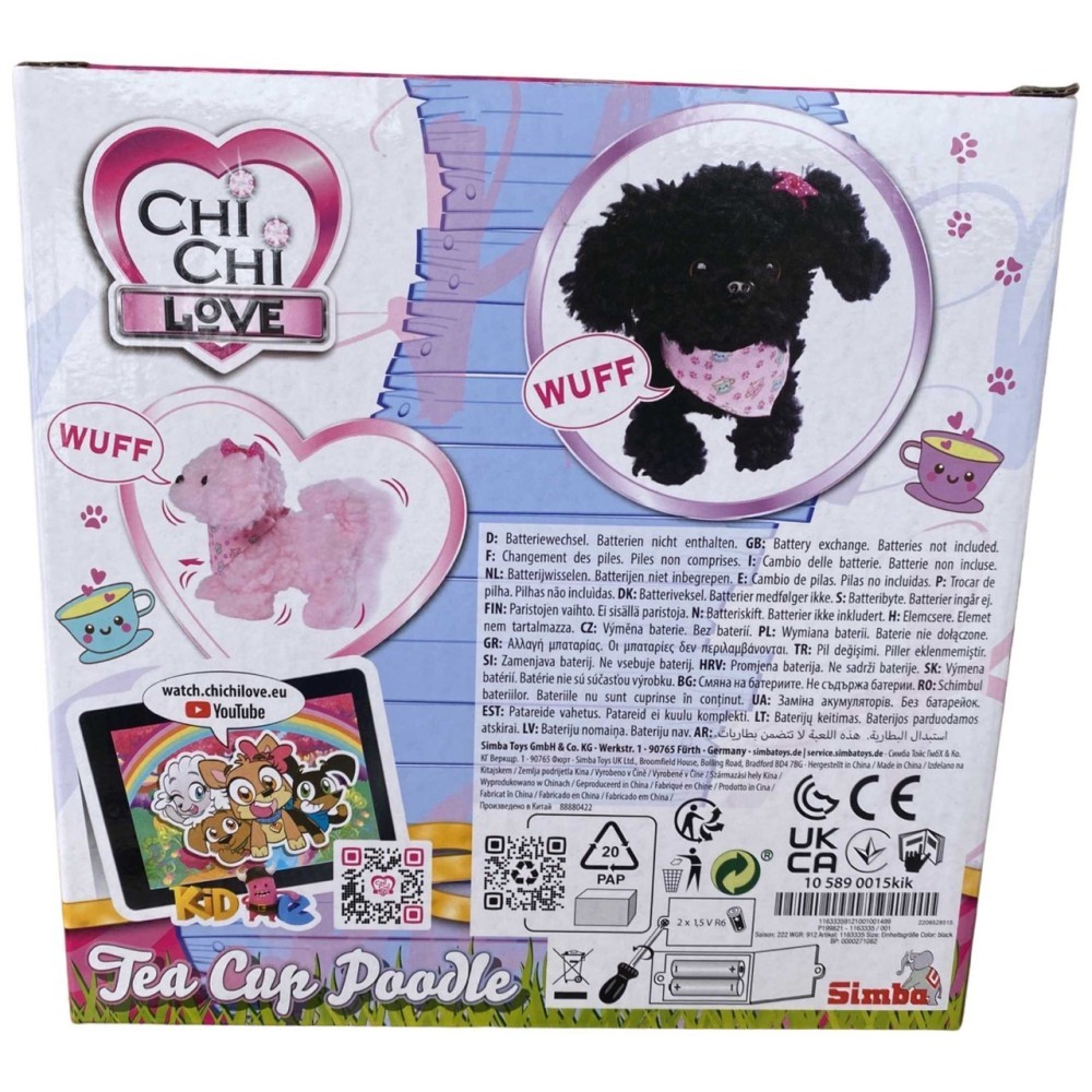 Cainele Chi Chi Love este un prieten grozav de joaca si un adevarat prieten al copilului tau. Tot ce trebuie sa faci este sa-i arati putina dragoste si sa-l iei acasa. Cainele de plus arata ca un pudel adevarat. Un caine dragut ii place sa se imbratiseze si sa mearga la plimbare. Caracteristica: - Cainele Chi Chi Love este un catelus pudel maro - pudelul maro poarta o bandana roz cu imprimeu prietenos - cainele merge, latra si da din coada - functiile pot fi activate si oprite prin apasarea butonului de pe caine - acest pudel dragut va incanta cu siguranta fiecare copil care viseaza sa aiba propriul animal de companie - cainele are o blana exceptional de draguta pentru a fi mangaiat si imbratisat - un animal de companie va va invata responsabilitatea de a avea grija de un animal de companie - Sunt necesare 2 baterii de 1,5 V R6 (nu sunt incluse)