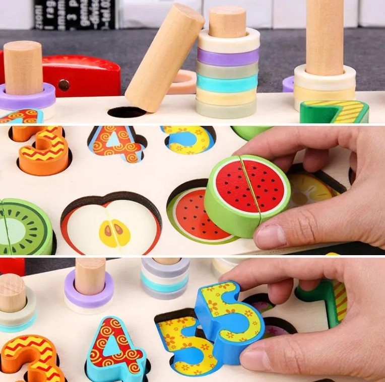 Jucarie sortator din lemn interactiv cu numere si fructe JC27