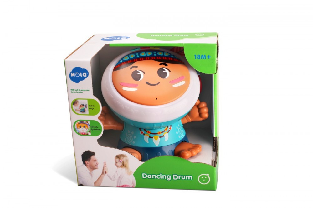 Cantece distractive si efecte sonore. Apasati toba pentru a reda una dintre cele trei melodii incorporate sau pentru a adauga efecte sonore!Apasati butonul pentru a selecta unul dintre cele trei efecte sonore incorporate (sunet de desene animate, tobe sau animale). Jucaria functioneaza cu o baterie reincarcabila de tip Lithium 3.7 V 1200 mAh. De asemenea, este inclus un cablu USB pentru incarcarea bateriei.