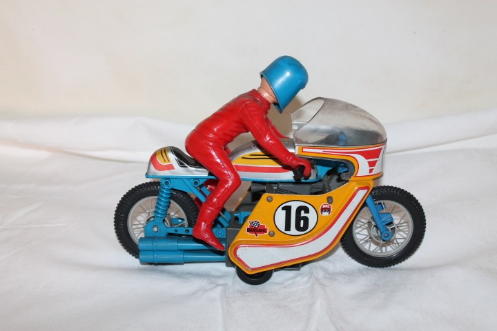 jucarie veche din tabla si plastic si motor cu frictiune,