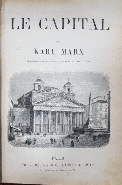PRIMA EDITIE IN LIMBA FRANCEZA ,TRADUSA DIN LIMBA GERMANA DE M. J. ROY . ACEASTA EDITIE ARE O IMPORTANTA DEOSEBITA SI PRIN FAPTUL CA ESTE REVIZUITA IN INTREGIME DE KARL MAX SI CONTINE IN PLUS FATA DE EDITIA GERMANA O SCRISOARE FACSIMILATA A AUTORULUI ,VOLUMUL ESTE IN FOARTE BUNA STARE DE CONSERVARE SI ARE O LEGATURA DE EPOCA COTOR PIELE. ,CARTE FOARTE RARA. ,NR PAG 351 ,