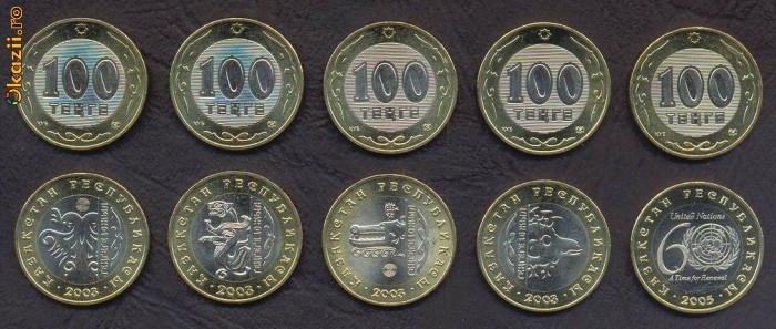 KAZAHSTAN █ SET COMPLET DE MONEDE █ 100 Tenge x 5 buc █ 2003-2005 █ UNC