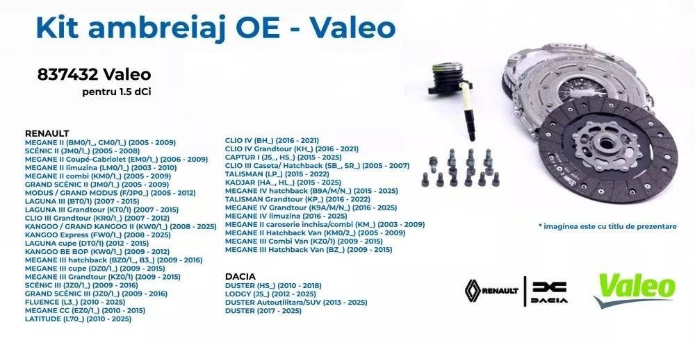 Kit ambreiaj complet Valeo placa presiune + disc ambreiaj + volanta + rulment presiune Dacia Duster 1.5 dci