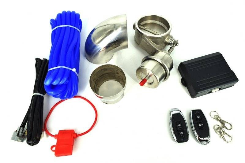 Kit cut-off valve cu telecomandaValva electrica pentru orice tip de motorizareReda un sunet puternic de MOTOR TURBO.Include cablaj,2 telecomenzi, valve si toate accesoriile destinate montarii.Dimensiune intrare - iesire valva: 63mm. ( gaura interioara din marge in margine )Pretul este pe set.