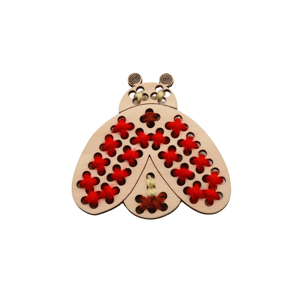 Kit de cusut buburuza Un sablon de cusut din lemn decupat cu laser este o baza rigidăa, de MDF, care prezintă un model perforat special conceput pentru a fi cusut cu fire colorate.Kit de cusut inovator, perfect pentru a satisface nevoile tale creative. Acest tip de aablon este perfect pentru dezvoltarea dexterității, răbdării și creativității, fiind o activitate relaxantă și educativă pentru toate vârstele. Kitul de cusut in forma de buburuza este o optiune excelenta pentru copii. Acesta contine un sablon cu gauri in forma de buburuza, un ac din plastic cu varful bont si fire colorate pentru cusut (rosu, maro, alb). Dimensiune: 13 cm x 12cm x grosime: 3 mm. Diametru gaura:4.5 mm.