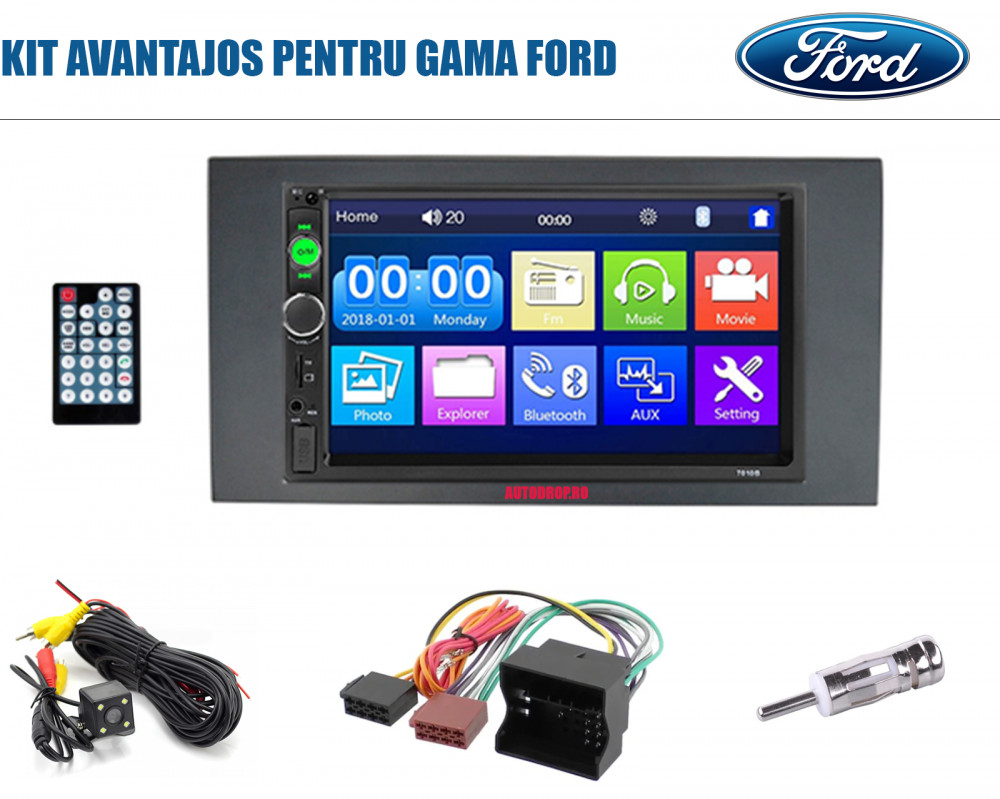 [KIT] MP5 Player pentru FORD, WinCE, Bluetooth, USB, CardSD, Camera Marsarier, Auxiliar, Mirrorlink, Touchscreen, - AD-BGPFORD7010B