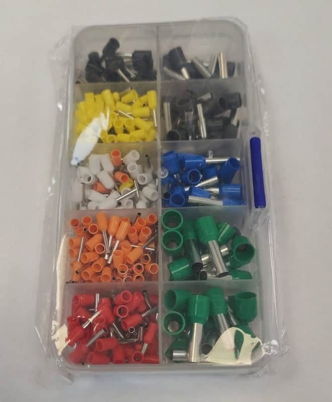 Kit papuci electrici terminali. Kit papuci electrici, termial cablu, cutie 400 buc 22 AWG /05mm²/E0506/100 buc 22 AWG /05mm²/E0508/100 buc 20 AWG /075mm²/E7508/50 buc 18 AWG /100mm²/E1008/50 buc 16 AWG /150mm²/E1510/25 buc 14 AWG /250mm²/E2512/25 buc 12 AWG /400mm²/E4012/25 buc 10 AWG/ 600mm²/E6012/25 buc