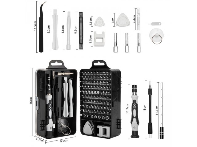 Kit surubelnita, DBG, 115 elemente, Negru/Argintiu