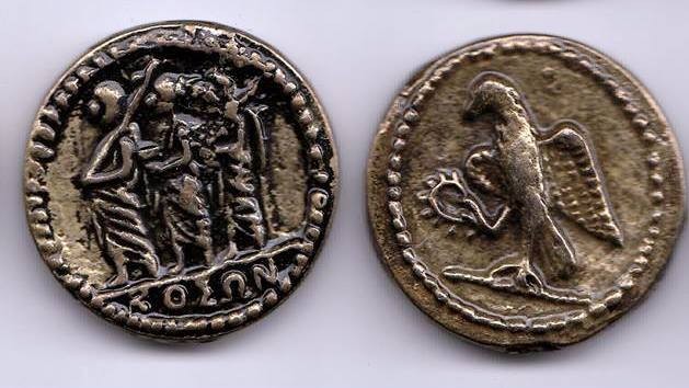 Koson dacic Replica dupa dinarii din aur batuti cu inscriptia Koson (ΚΟΣΩΝ). Realizat din aliaj de metal aurit. Coson (sau Koson) a fost rege al dacilor dupa domnia lui Burebista, în secolul I î. Chr. De la regele Koson au ramas monedele de aur, cosonii, care îi poarta numele. „Dacii traiesc nedezlipiti de munti. De acolo, sub conducerea regelui Koson, obisnuiau sa se coboare si sa pustiasca tinuturile vecine, ori de câte ori Dunarea, înghetata de ger, îsi unea malurile. Augustus a hotarât sa îndeparteze aceasta populatie, de care era foarte greu sa te apropii. Astfel, a trimis pe Lentulus si i-a alungat pe malul de dincolo. Astfel, dacii nu au putut fi înfrânti, ci doar respinsi si împrastiati.” Reproduceri dupa celebrele monede antice din aur batute de Regele Koson, un rege care a condus o parte din regatul geto-dacilor, dupa moartea lui Burebista Caracteristici: monede metalice din aliaj de zinc si aluminiu, culoare auriu învechit, diametru 3 cm. Fiecare replica este unica în felul ei.