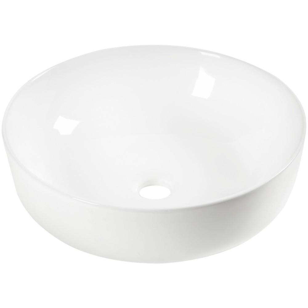 Date principale • 41,5 × 41,5 × 13 cm • ceramică sanitară • alb ca zăpada • formă rotundă • fără orificiu pentru baterie • fără preaplin • poate fi montat pe blat