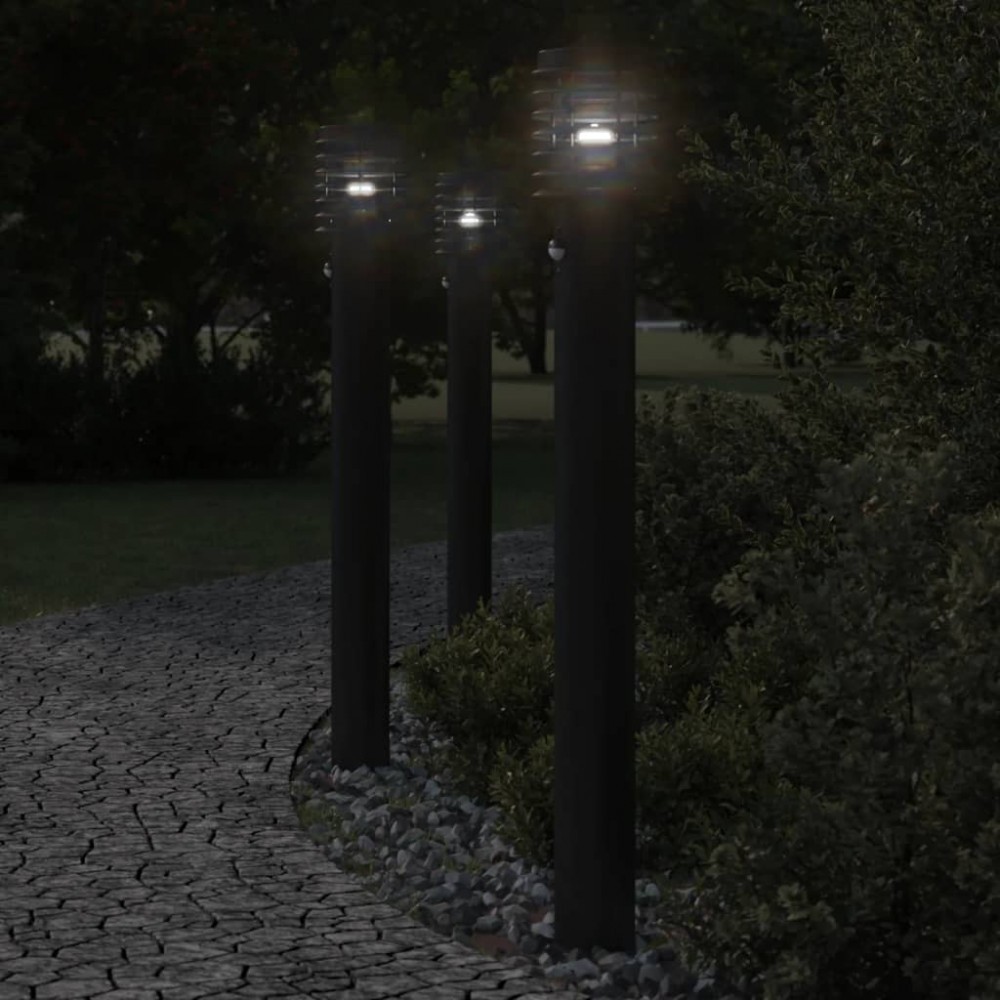 Lămpi exterioare de podea senzori 3 buc. negru 110 cm oțel inox