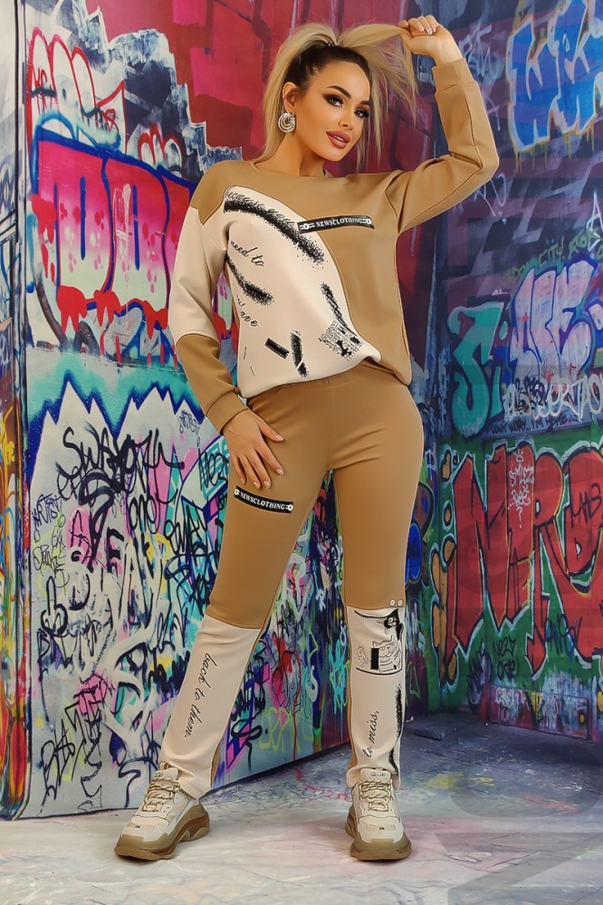 Trening sport / casual in doua culori, alcatuit din bluza cu maneci lungi si pantaloni cu elastic in talie. Este accesorizat cu strasuri, imprimeu text si banda cu doi nasturi. Produs masurat si verificat - trening sport/casual - elastic in talie - maneci lungi - guler rotund - accesorizat cu imprimeu text - accesorizat cu strasuri si banda cu nasturi - material: 70% bumbac, 25% poliester şi 5% lycra