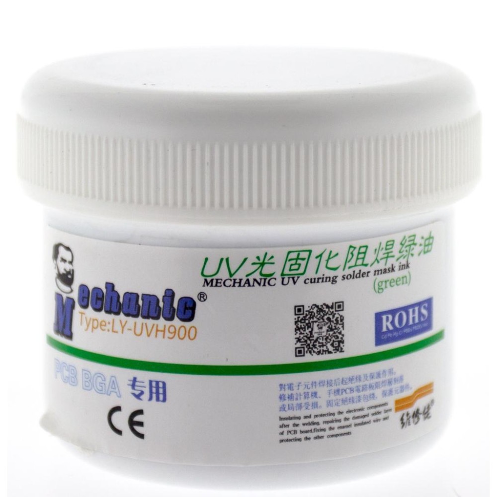 Dupa izolare, se intareste la orice sursa UV si rezista la temperaturi mari, chiar sub cipurile bga in timpul reballing-ului. Izoleaza astfel traseele exfoliate sau refacute. De asemenea, se poate folosi cu succes pentru izolarea PCB-urilor nou construite. Este necesara o lampa UV.
