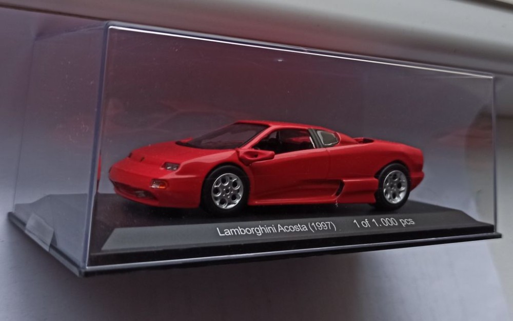 Macheta Lamborghini Acosta 1997 Concept produsa de Leo Models/WhiteBox la scara 1/43 in editie limitata, noua, in cutia originala.