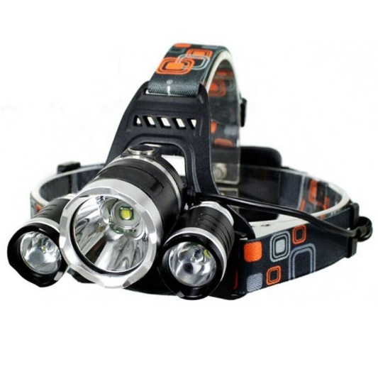Lampă frontală cu 3 leduri CREE T6 (cu baterii reincarcabile)
