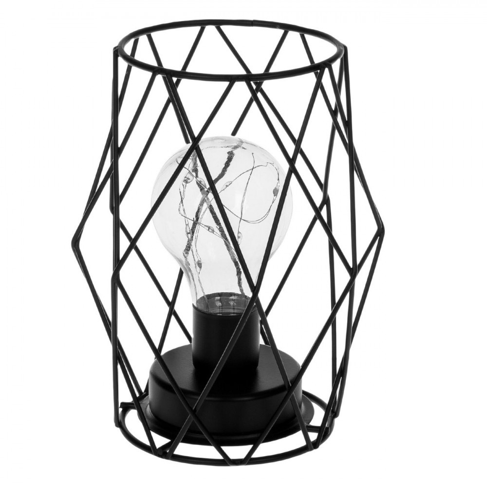 Lampa de Masă Metalică, Model Plasă, LED-uri Chain, Negru, 12x12x16.5cm