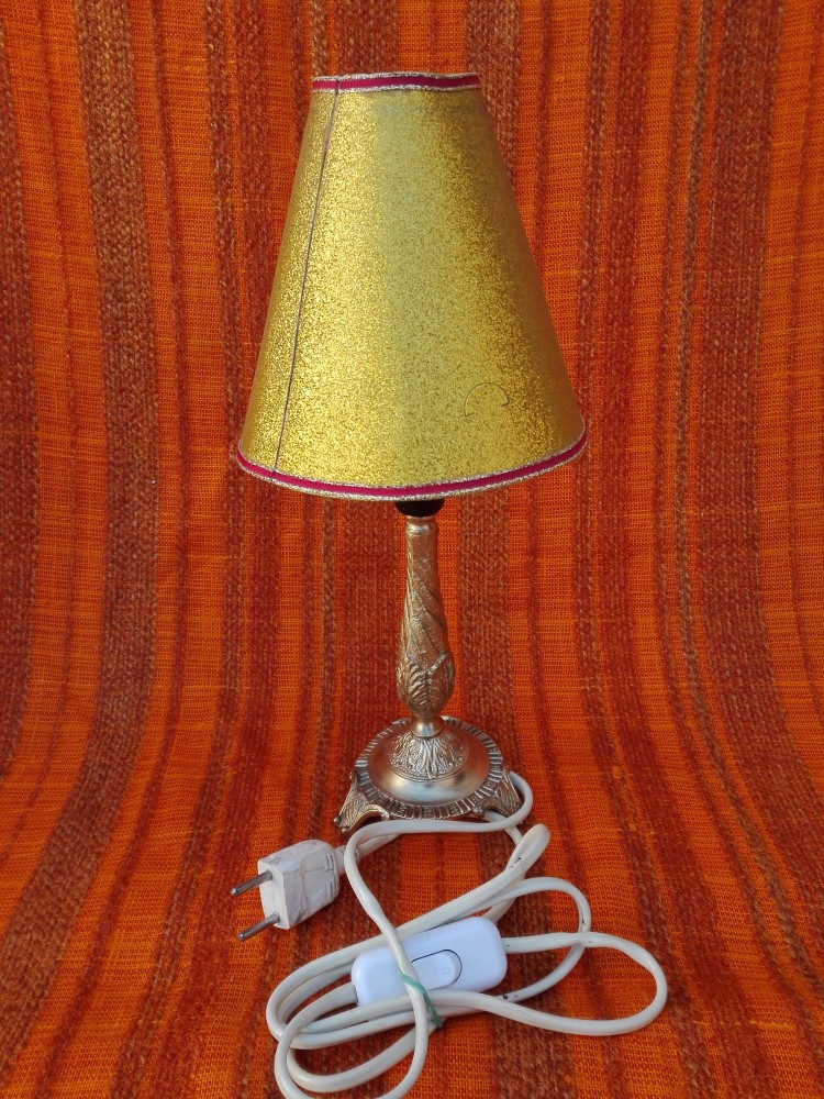 LAMPA NOPTIERA-bronz masiv,dulie E14,intrerupator,stecher,abajur; se livreaza fara bec.