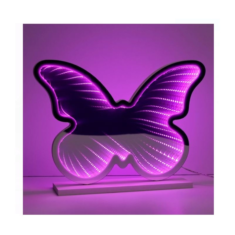 Lampa LED Infinity Mirror Fluture Fucsia Negru este accesoriul