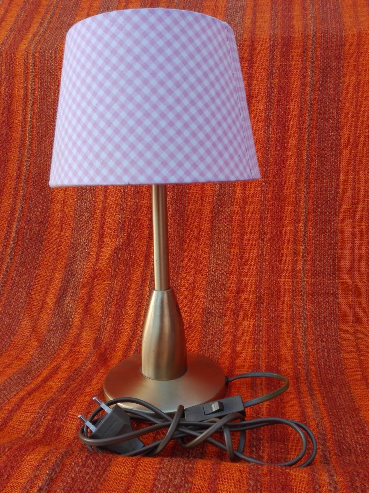 LAMPA NOPTIERA din alama,abajur,intrerupator,stecher,dulie E27,fara bec.H=35cm.